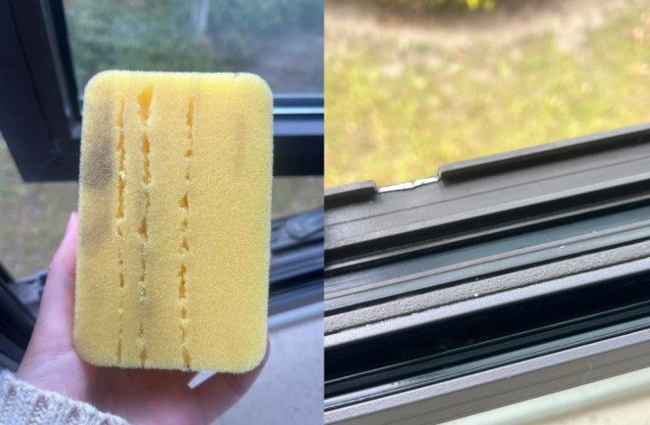 ■海绵擦对准窗户槽的间距,对海绵擦进行裁剪;